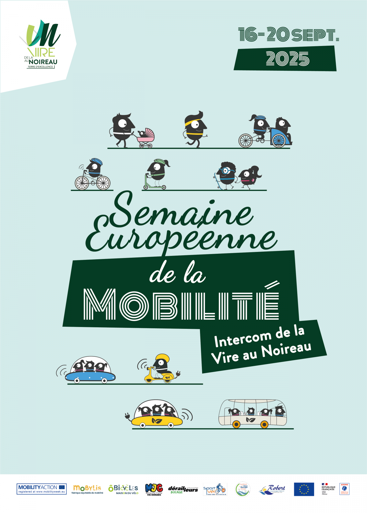 Du 16 au 20 septembre 2025, l’Intercom de la Vire au Noireau participe à la Semaine européenne de la mobilité et vous propose un programme varié avec de nombreuses animations gratuites pour découvrir et tester des modes de déplacement plus durables, inclusifs et responsables.