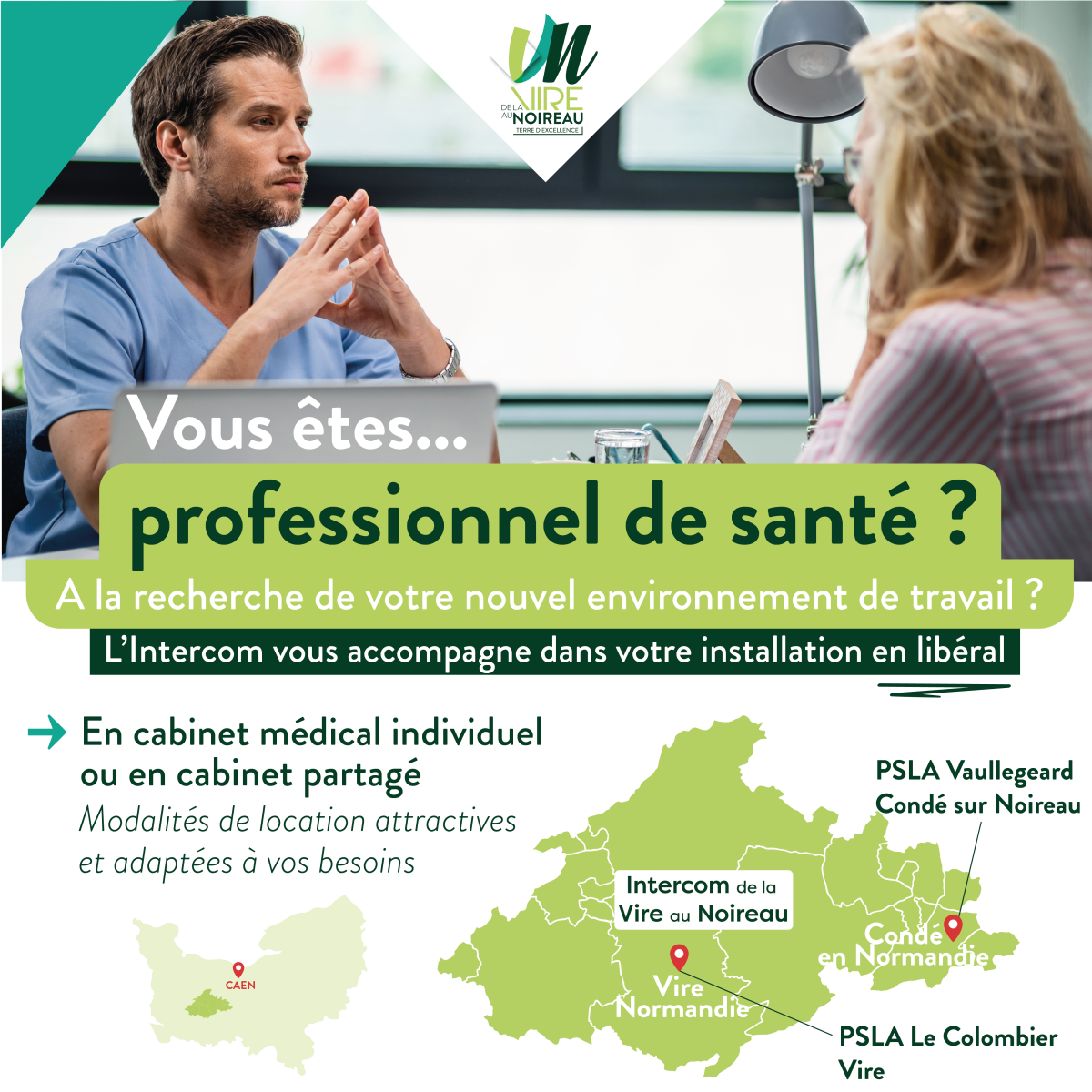 L’Intercom de la Vire au Noireau accompagne les professionnels de santé dans leur projet d’installation en exercice libéral, au sein de pôles de santé modernes et pluridisciplinaires, implantés sur un territoire engagé pour l’accès aux soins.
