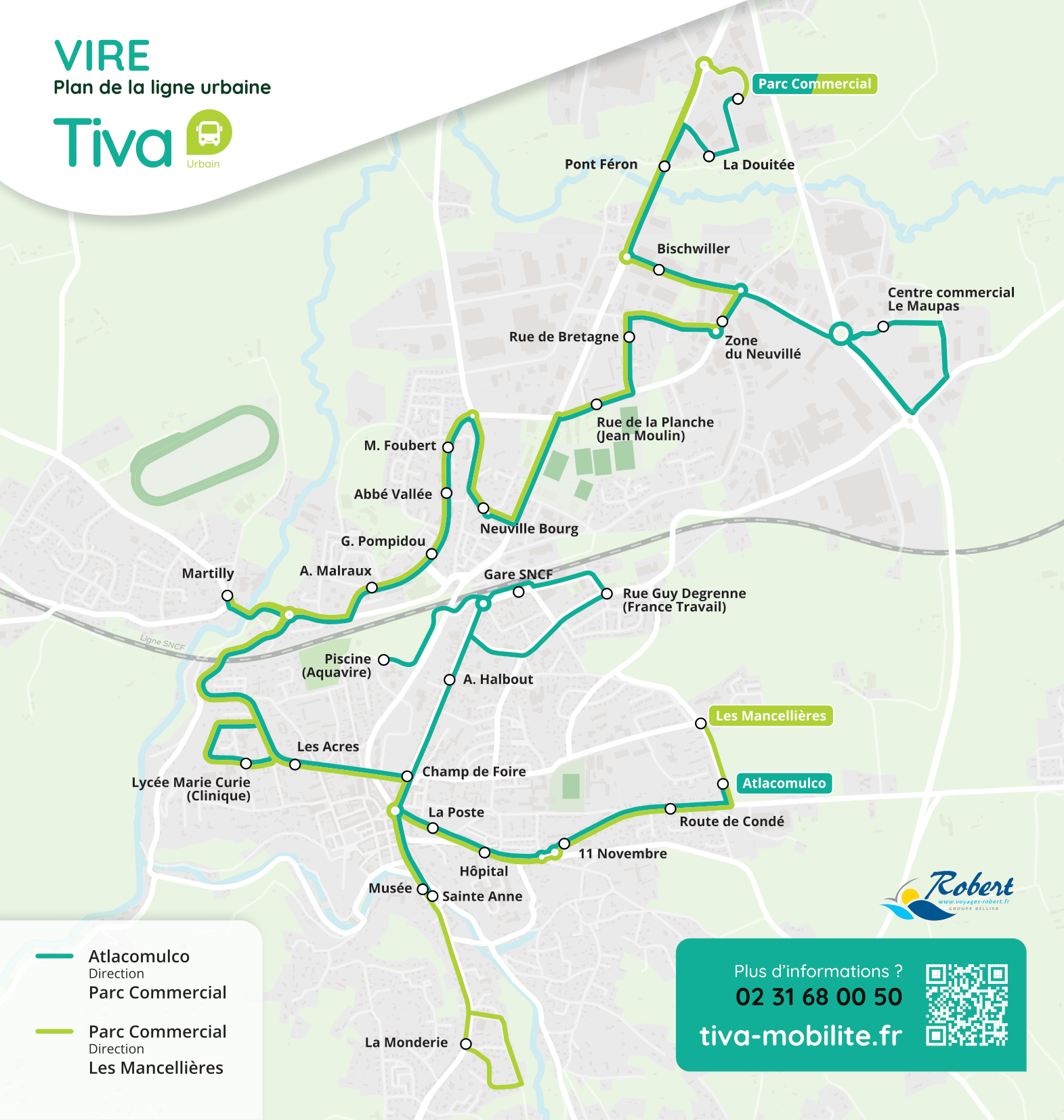 Vire regroupe plusieurs zones d’activités ainsi que des parcs commerciaux, cela fait de cette commune, un bassin de vie riche en usagers et emplois. C’est pourquoi l’Intercom de la Vire au Noireau assure une ligne de bus urbaine afin de répondre aux besoins de ses usagers sur un plan professionnel mais aussi personnel. Avec une plage horaire allant de 7h à 20h05, cette ligne vous permettra de vous déplacer d’un point A à un point B grâce aux 30 points d’arrêts desservis. Le trajet a été pensé pour faciliter l’accès au pllus grand nombre d’usagers. De plus, nous avons pensé le trajet de façon à ce que le plus grand nombre d’usagers puissent avoir accès à cette ligne.